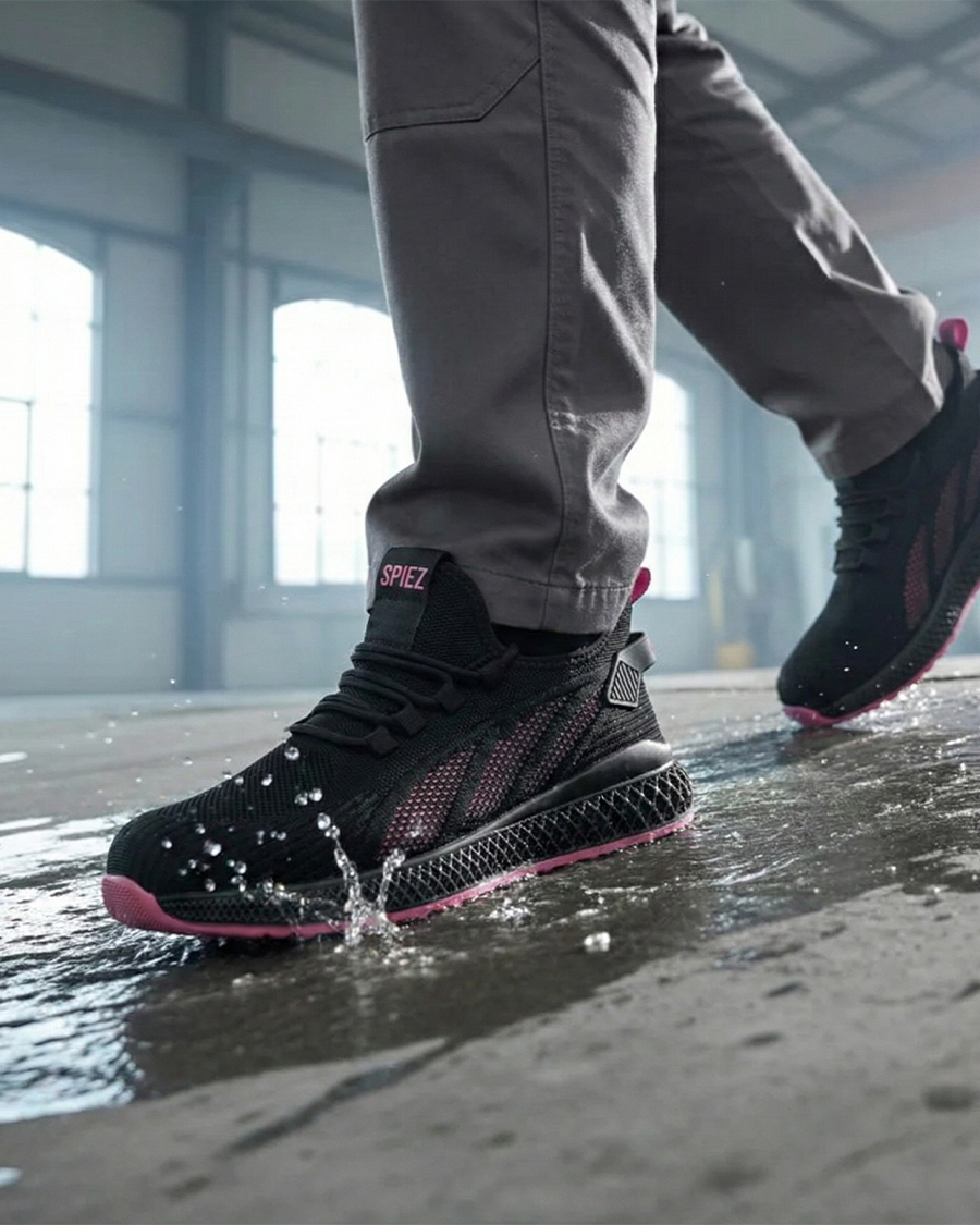 Designed for fast-paced environments. The slip-on structure combined with adaptive lock laces ensures a snug fit that stays secure through long shifts, bending, lifting, and constant movement.