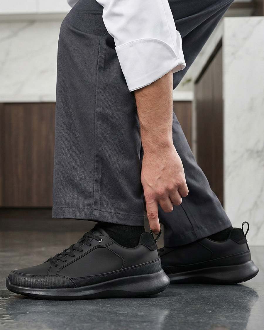 Cada zapato pesa solo 9,52 oz, la entresuela de EVA combinada con una suela exterior con parche de goma hace que los zapatos de trabajo antideslizantes sean excelentes en términos de comodidad y durabilidad. Ideales para entornos de trabajo difíciles como cocinas, restaurantes, laboratorios, fábricas, lavaderos de autos, estaciones de servicio, etc., también son perfectos como zapatillas para caminar.