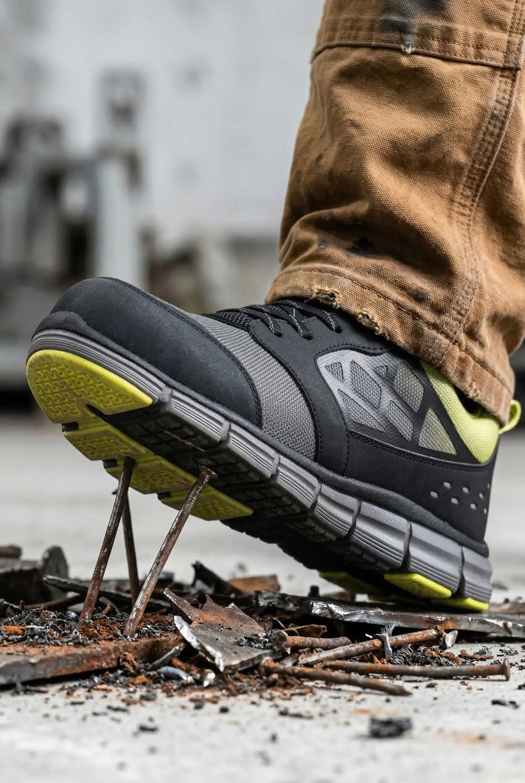 With premium Phylon and rubber outsoles, these slip-resistant work shoes are crafted with deep grooves and serrations to maximize traction on slippery surfaces like concrete, ensuring stability and safety in most working environments.