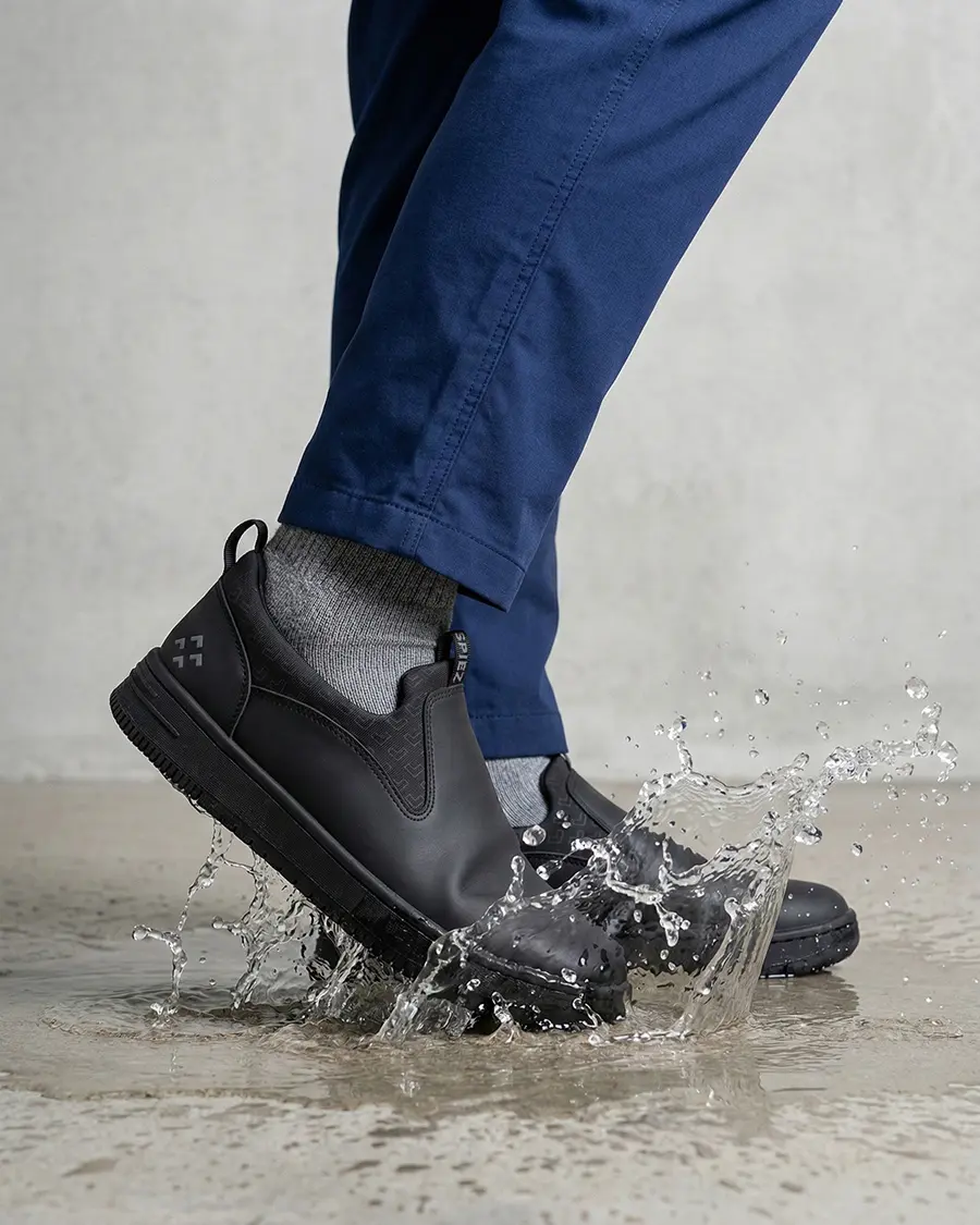 Constructed with water-repellent fabric technology. Effectively blocks external moisture and splashes to keep feet dry, while still allowing for essential air circulation.