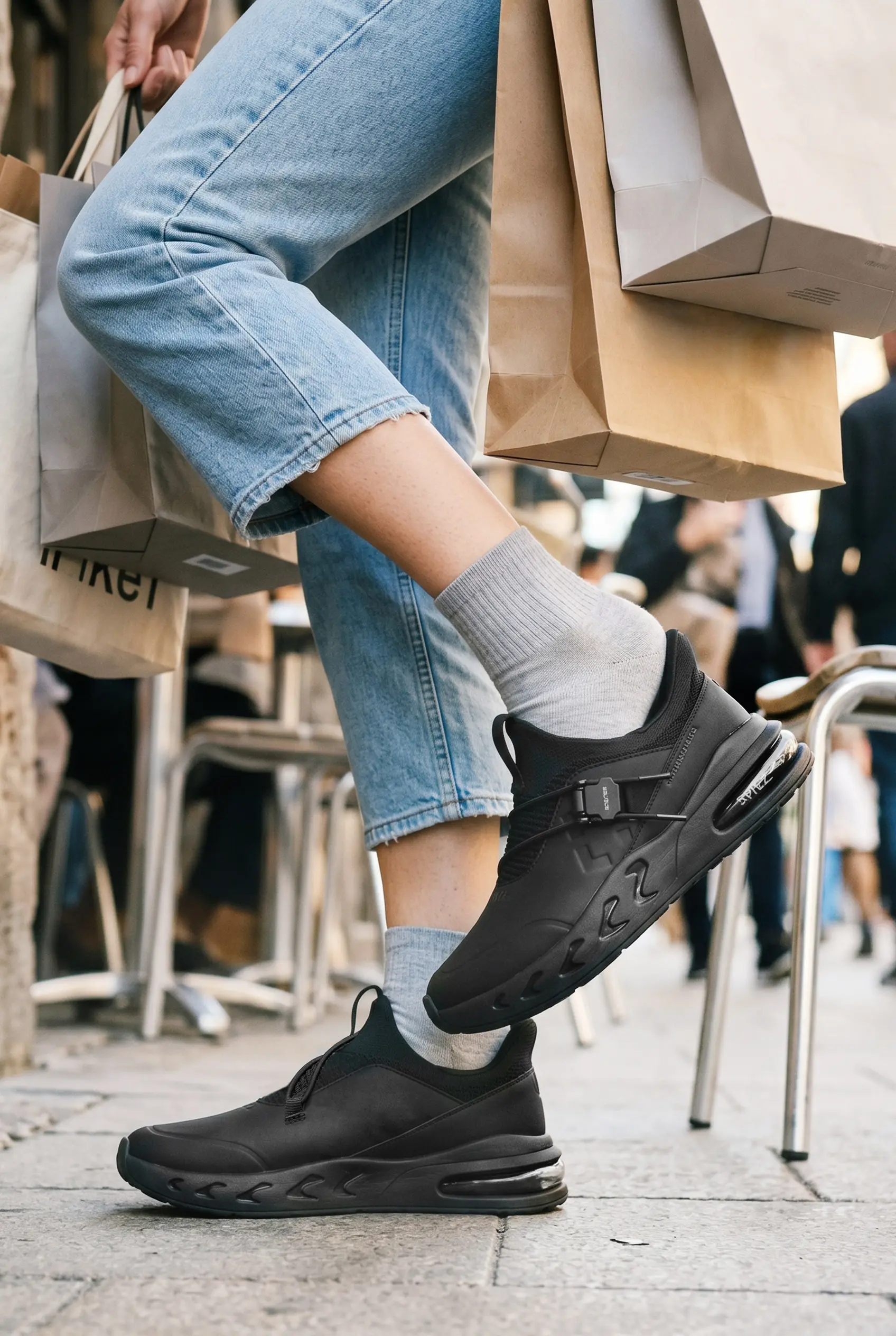 Laceless design with an elastic collar for quick on-and-off access. Saves time and offers a snug, sock-like fit without the hassle of tying knots.