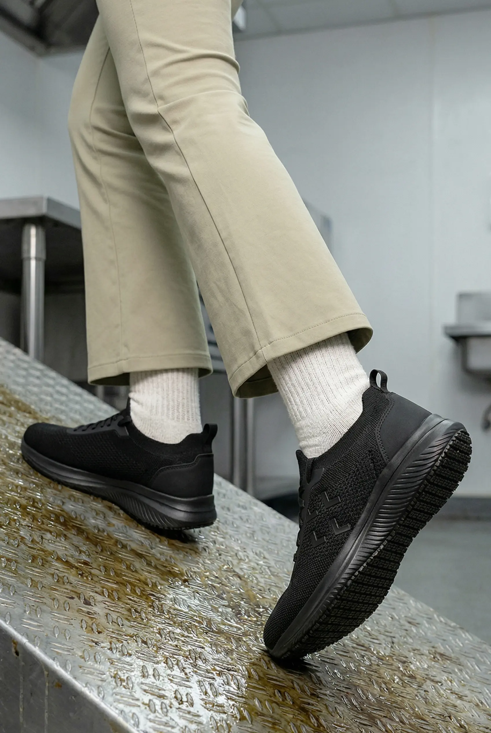 Features an oil-resistant outsole compound that provides enhanced traction and maintains a strong grip even on oily and slippery surfaces, significantly reducing the risk of slips and falls.
