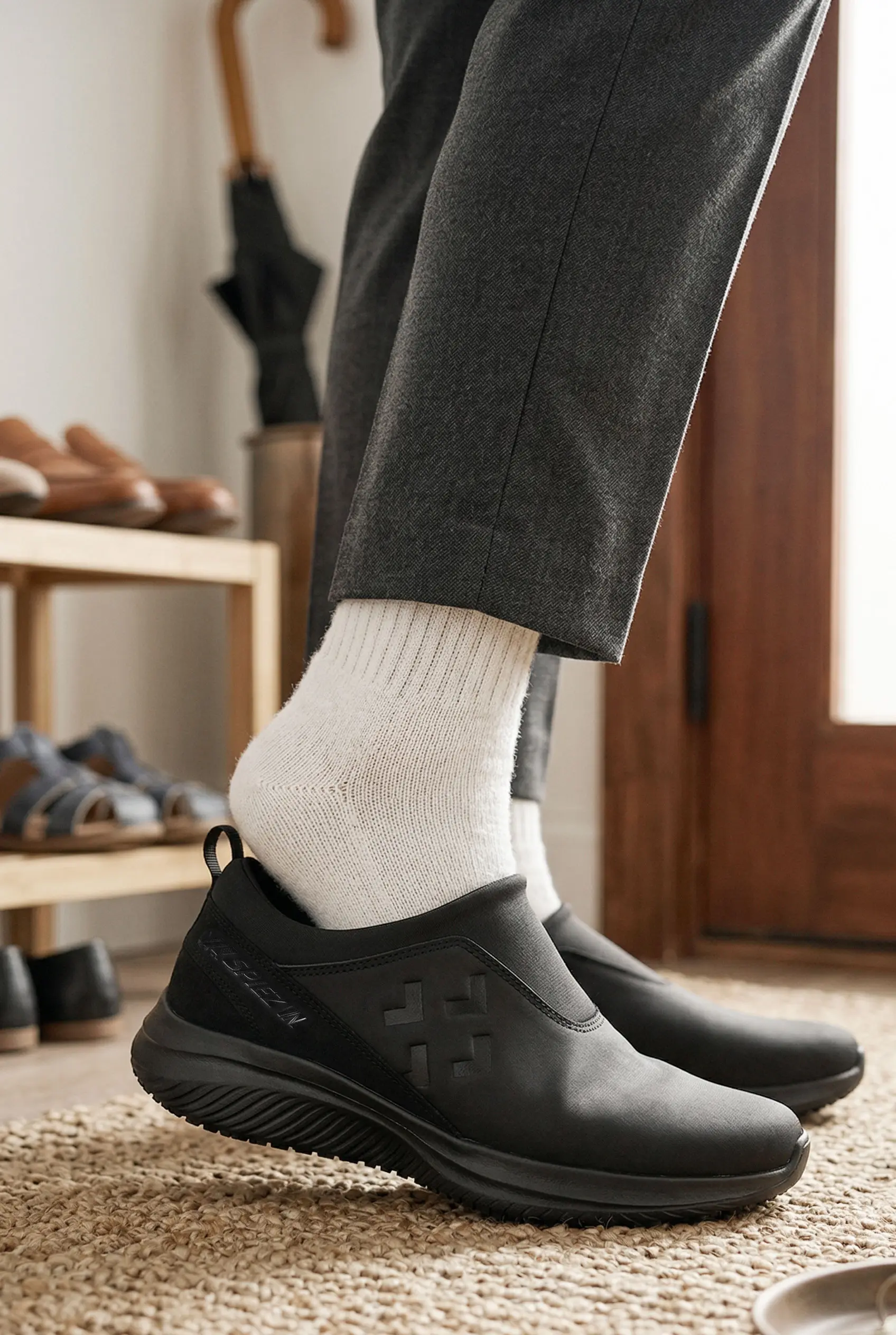 Laceless design with an elastic collar for quick on-and-off access. Saves time and offers a snug, sock-like fit without the hassle of tying knots.