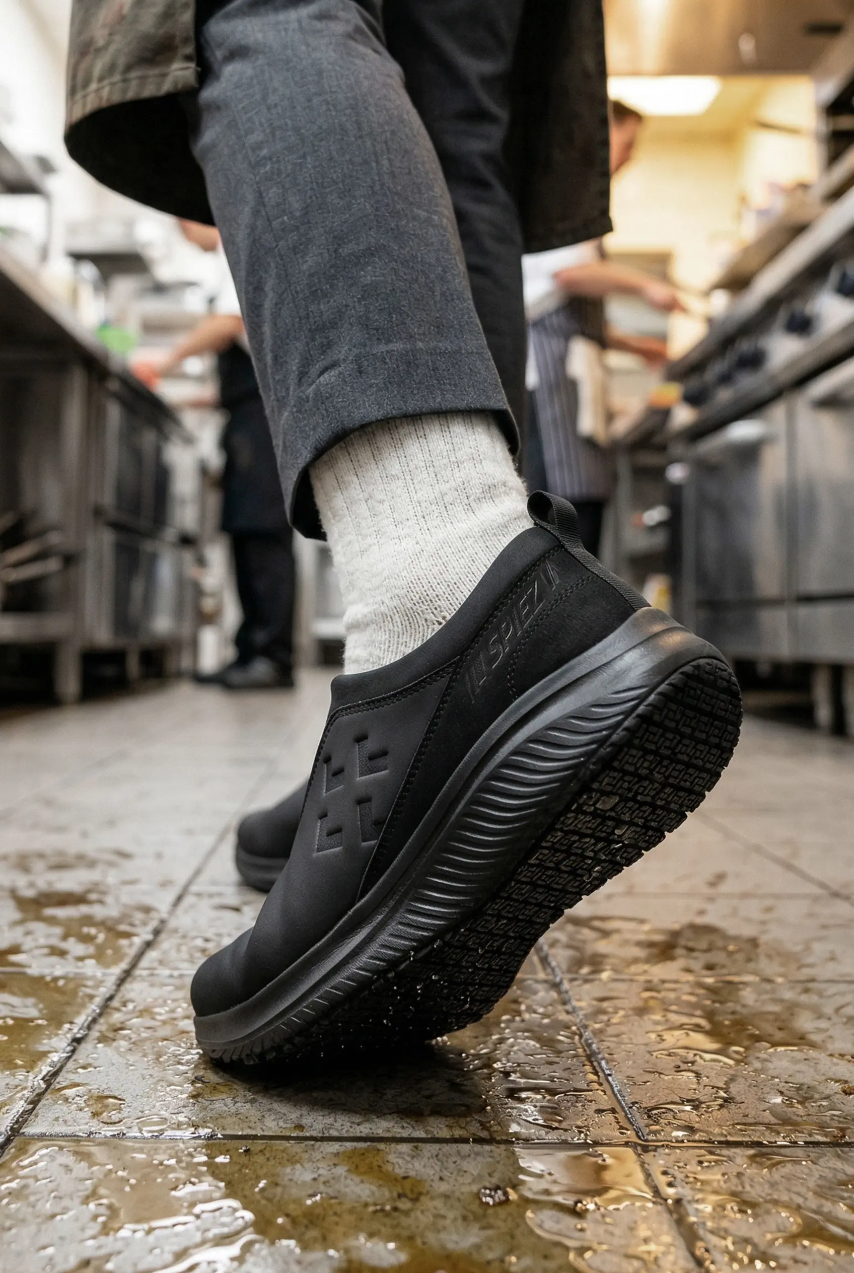 Features an oil-resistant outsole compound that provides enhanced traction and maintains a strong grip even on oily and slippery surfaces, significantly reducing the risk of slips and falls.